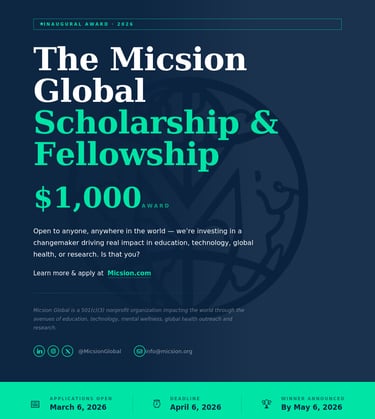 Micsion Global Corp (MGC), a 501(c)(3) nonprofit organization dedicated to breaking down barriers in education, mental wellness, healthcare, and technology, is proud to announce the launch of its first-ever $1,000 Scholarship and Fellowship.